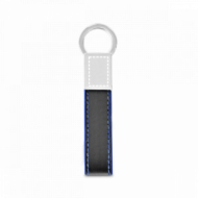 Chaveiro de couro sintético e metal. Com mosquetão. Incluso caixa.